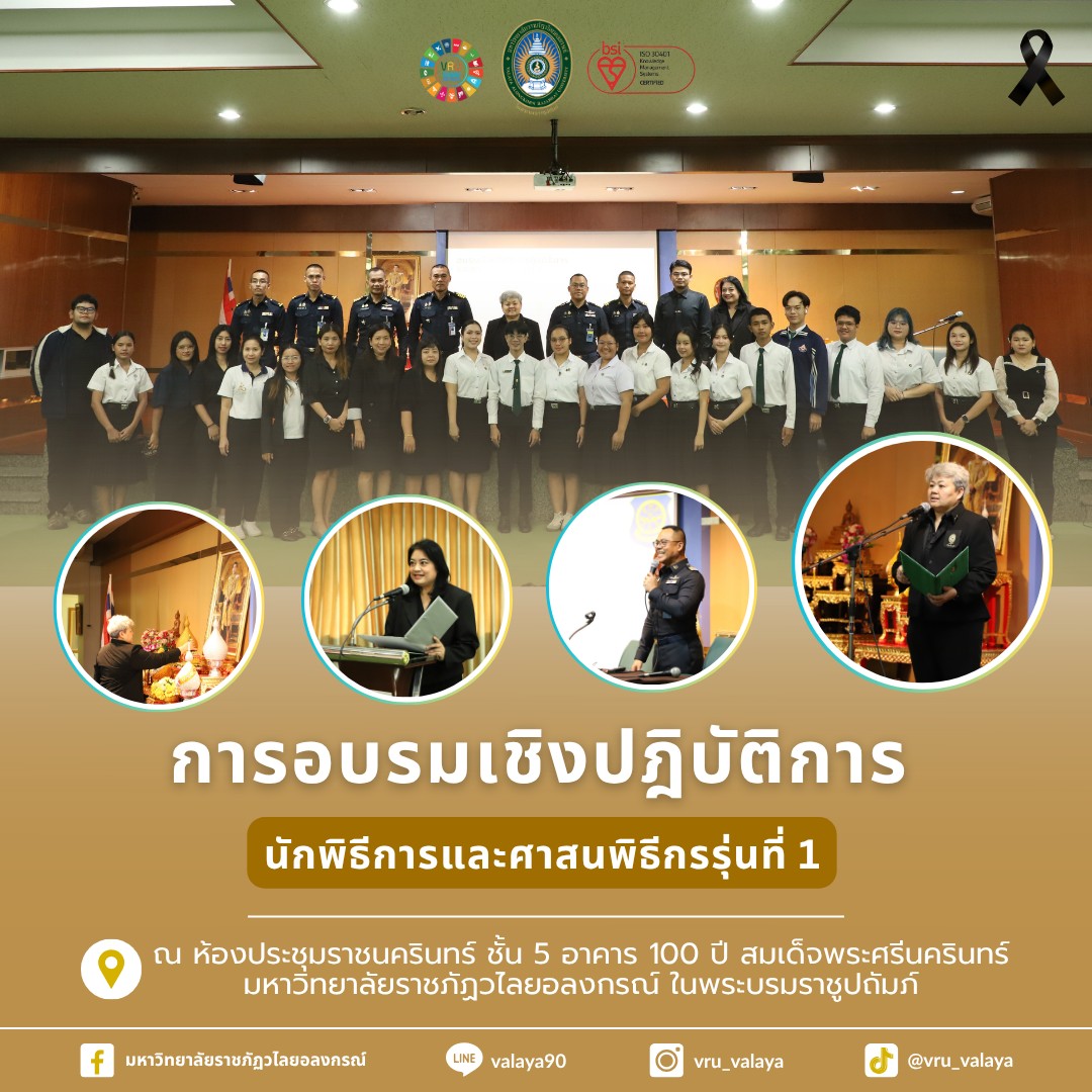 วันที่ 12 พฤศจิกายน 2568 รศ.ดร.ฐิติพร พิชญกุล รองอธิการบดี เป็นประธานกล่าวต้อนรับและเปิดกิจกรรมการอบรมเชิงปฎิบัติการนักพิธีการและศาสนพิธีกรรุ่นที่ 1 โดย ผศ.อัจจิมา มั่นทน กล่าวรายงานวัตถุประสงค์ของการจัดกิจจกรรมในครั้งนี้ ทั้งนี้ ทางมหาวิทยาลัยราชภัฏวไลยอลงกรณ์ฯ ได้รับเกียรติทีมวิทยากรจากคณะอนุศาสนาจารย์ กองอนุศาสนาจารย์ กรมยุทธศึกษาทหารอากาศ นำทีมโดย นาวาอากาศเอก พิเศษ สุรรัตน์ จันทะนาข่า ได้นำคณะวิทยากรมาให้ความรู้ และการปฏิบัติในพิธีการต่างๆอย่างถูกต้องตามหลักพิธีการ ณ ห้องประชุมราชนครินทร์ ชั้น 5 อาคาร 100 ปี สมเด็จพระศรีนครินทร์ มหาวิทยาลัยราชภัฏวไลยอลงกรณ์ ในพระบรมราชูปถัมภ์